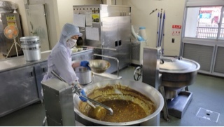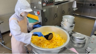 給食室では、大隅西のみんなのために、調理員のみなさんが力を合わせて、おいしい給食を作ってくれています。
