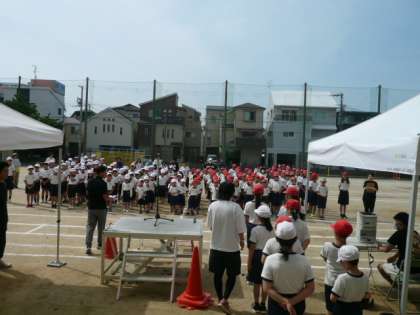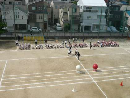 今日の内容は、開会式・閉会式の確認と、全学年競技「大玉運び」の練習をしました。みんなが安全に競技ができるよう、最後には全員で石拾いをしました。