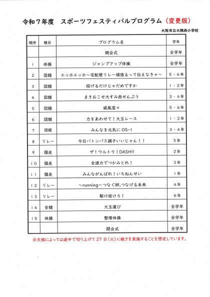 また、プログラム順を変更し、先に団体競技を実施します。添付のファイルをごらんください。
