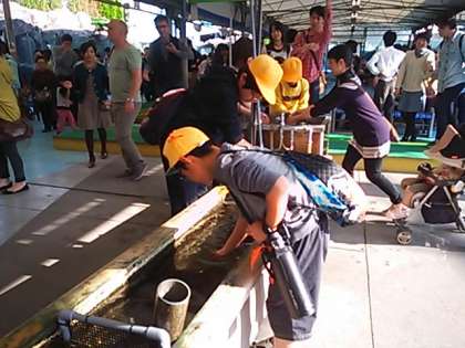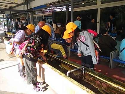 タッチプールでも、きゃ〜きゃ〜言いながら触ってます。
