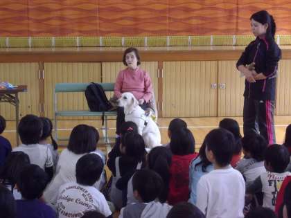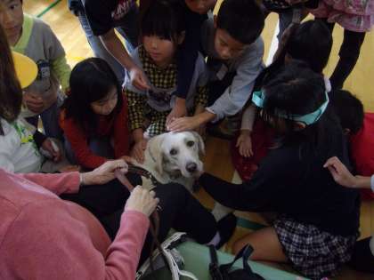 元気な3年生に囲まれてもあまり動じずご主人様に寄り添って