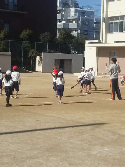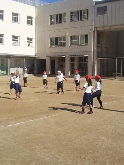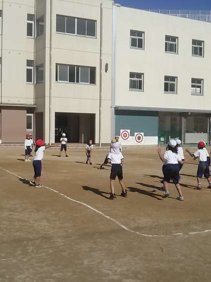 今日は久しぶりの快晴!(^^)! 2年生の子どもたちも運動場でのびのびと体育に取り組んでいました!