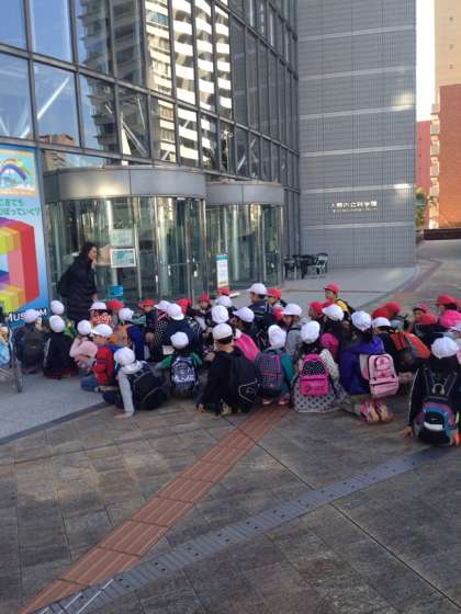 大阪市立科学館と国際美術館の見学です。科学館に入る前に、先生からのお話です。