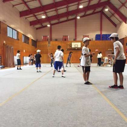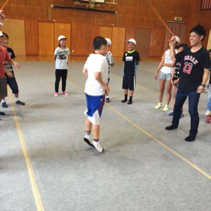 雨が降っているので、体育館で室内遊びです。