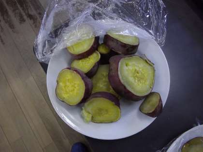 とても大きなおいもを丁寧に洗って蒸しました。
