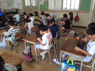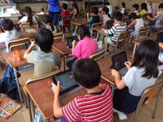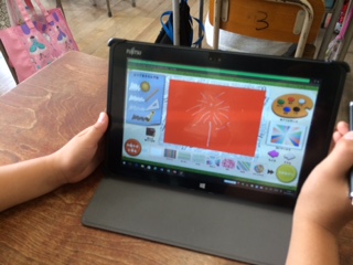 2年生がタブレットを使って授業しています。綺麗な花火を打ち上げています。