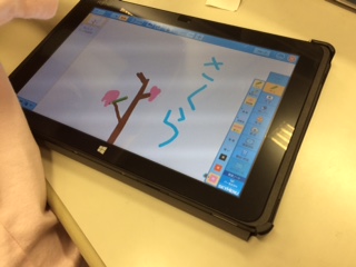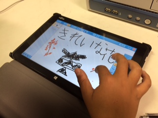 二年生がタブレットを使っています。タッチペンだけではなく、指を使ってもお絵かきができます。