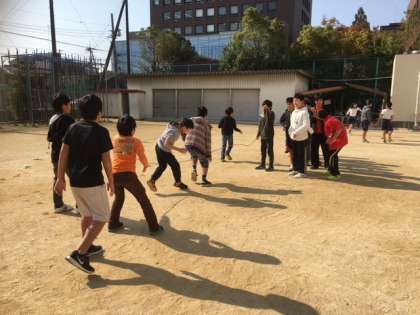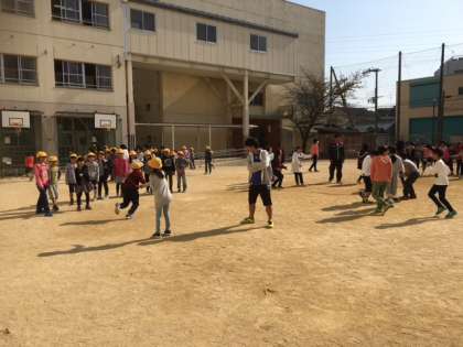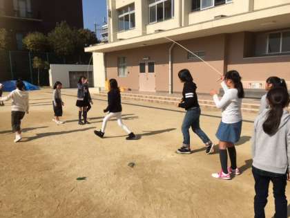 15分休憩時、全校で、大縄跳びの8の字跳びにとりくんでいます。