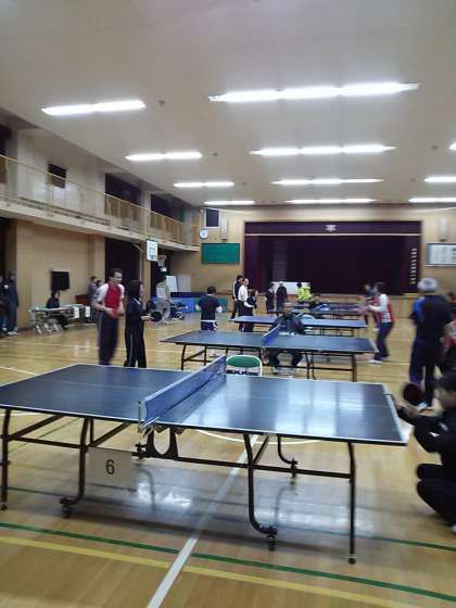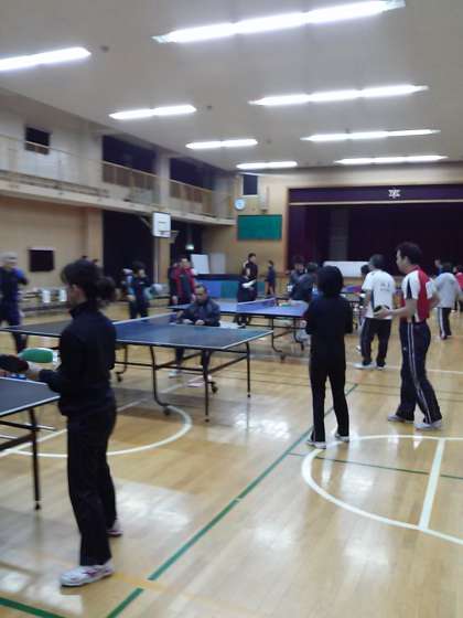 四校の親善を目的に卓球大会が大隅西小学校講堂にて行われました。小雪舞い散る寒い日でしたが、会場は熱気にあふれていました。