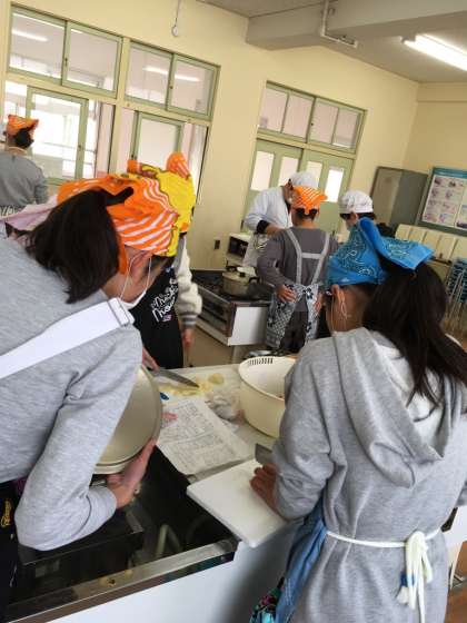 家庭科で調理実習の学習を行なっています。自分たちで考えたメニューを作ります。完成が楽しみです。