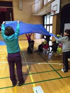4月に入学する幼稚園や保育所の子どもたちを2年生が招待しています。ボウリングや輪投げ、釣りなどをして楽しんでいます。