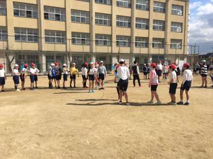 大半の児童が、4月から瑞光中学校で共に学びます。1時間、ドッジボールや大縄跳びをして楽しく交流しました。