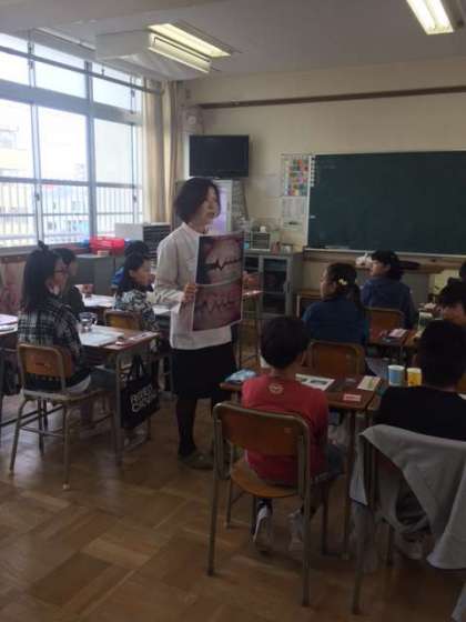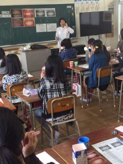 6年生対象に歯と口の健康教室を行いました。歯科衛生士さんから、噛むことの大切さや歯磨きの仕方などについて教えてもらいました。歯垢のチェックでは、朝歯磨きをしたにもかかわらず、思った以上に歯垢が残っていることに子ども達は驚いていました。