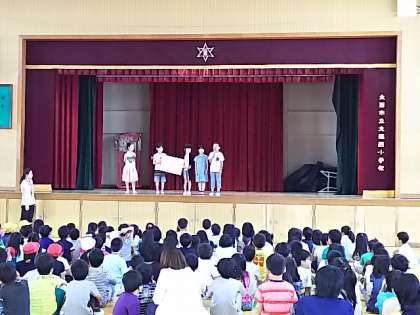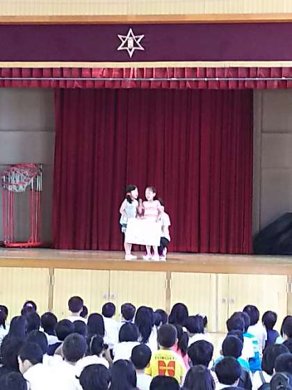 今日の朝会では、なかよし集会の出し物紹介がありました。