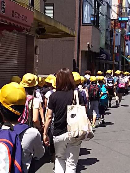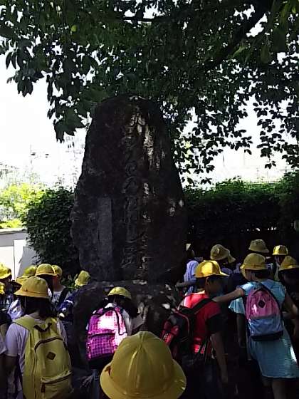 生野区にあるコリアタウンに来ています。歴史について学習したあと、御幸森神社と鶴の橋跡を見学しています。