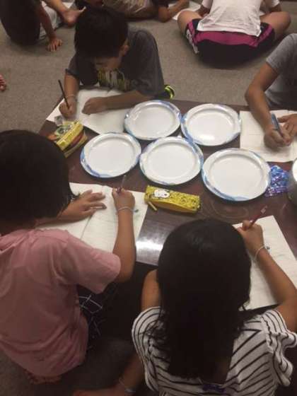 1日目の最後の活動です。班ごとに今日1日の振り返りをしています。