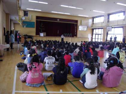 着任式に引き続き、始業式をしました。ドキドキの担任発表がありました。校歌はとても元気よく歌えました。一年間、元気で頑張りましょう!!!