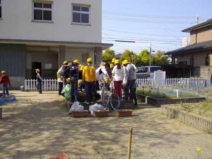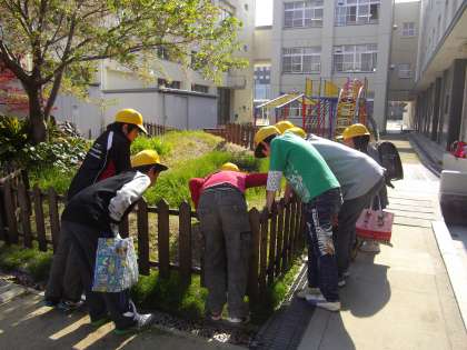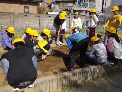 6年生の理科の学習で、ジャガイモを植えます。そのための準備をしています。春の様子を観察し、土を耕しました。大きなジャガイモができるかな?