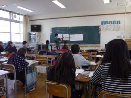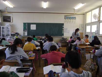 授業の始まりは、きちんと挨拶をしています。少人数指導も始まっています。