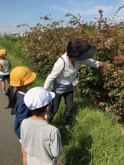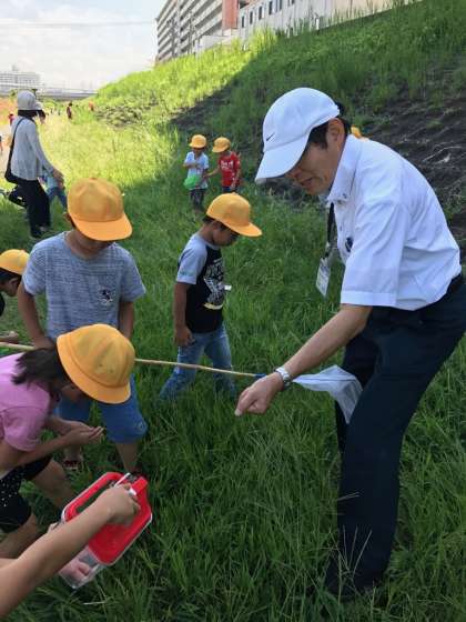 生活科では、校長先生、地域の方と一緒に、神崎川へ「むしたんけん」に行きました。草の中からとび出したバッタにびっくり!新しい発見がいっぱいでした。