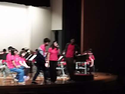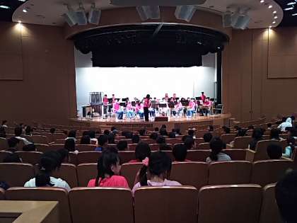 クラシックやポップスなど、いろいろなジャンルの音楽を演奏してくださいました。また、人気芸人のマネで吹奏楽のよさを教えていただきました。