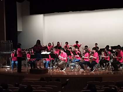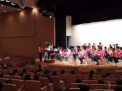 多くの希望者の中から3名の児童が選ばれて、指揮者体験をしました。緊張しながらも教えてもらった通りに、しっかりとタクトを振ることができました!