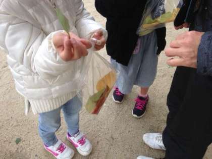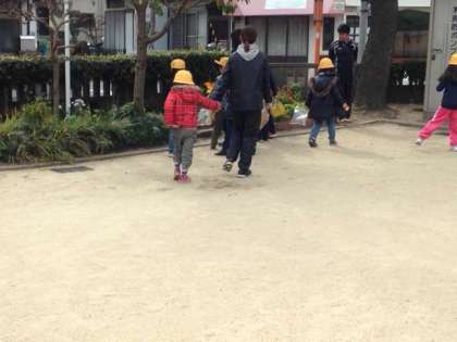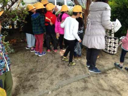 1年生は秋みつけに出かけました。地域の方も一緒に来ていただきました。まず、大門公園から秋を探します。