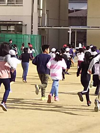 今日からかけあし週間が始まりました。低学年と高学年で、コースを分けて走っています。