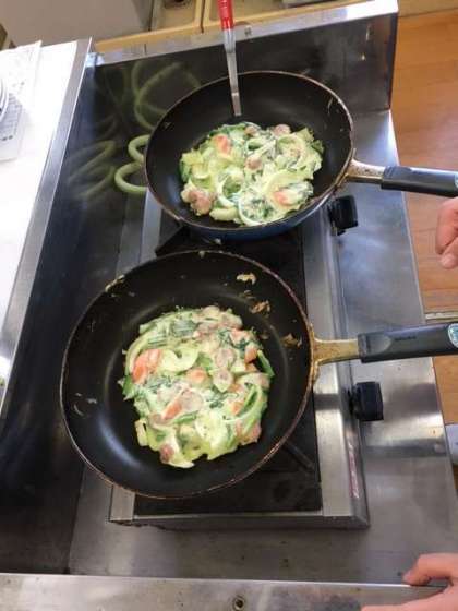 一学期にコリアタウンを見学した時に見た、チヂミを作りました。