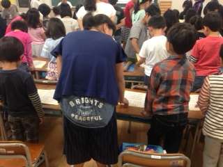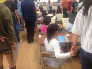 6年生が1年生の教室へ行って、運動会の歌や校歌を教えています。やさしいお兄さんお姉さんに教えてもらって1年生もしっかりと歌っていました。