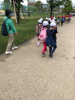 暑くもなく寒くもない遠足日和の中、天王寺動物園へ向かって「てんしば」の横を歩いています。