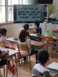 4年生が英語でのあいさつなどで楽しく学んでいます。