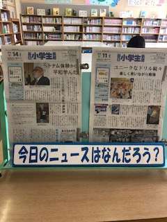 学校図書館補助員の方が昼休みに図書館を開放されています。毎日小学生新聞のコーナーも作られています。読書を楽しむ子どもたちが図書館開放を楽しみにしています。