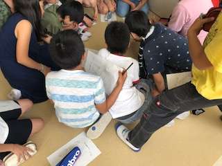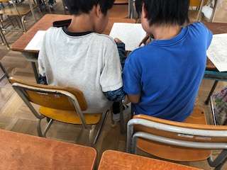 運動会に向けての児童の係活動に取り組んでいます。シートに当日の内容を書き込んだり、相談したりしています。