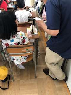 母国語が英語の講師の方による授業です。担任と共におこなっています。