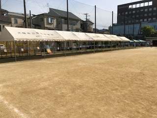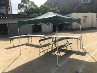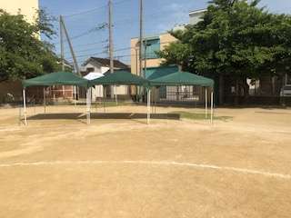 児童席のテントも張りました。準備係もテントの中に入ります。