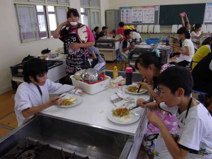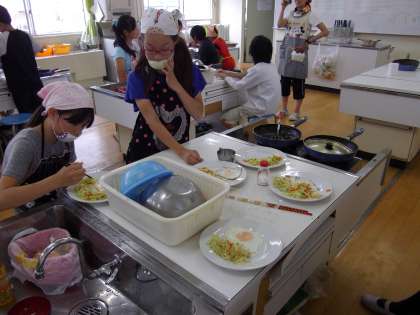 目玉焼きと野菜炒めを作りました。なかなか上手にできたようです!