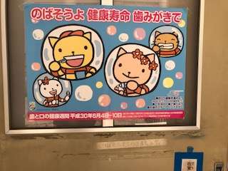本日の児童朝会で校長が話した歯と口の健康週間についてのポスターを保健室に掲示しています。今週の木曜日には、全学年で歯科検診を行います。