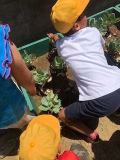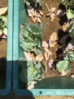 キャベツの葉にいるモンシロチョウの幼虫を探しています。