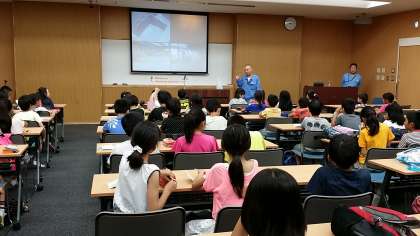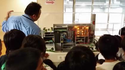 焼却場の見学に来ています。しっかり説明を聞いています。