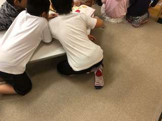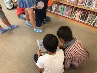 今日は地域の方が図書館を開放されておられます。雨のため、たくさんの子どもたちが本を読みにきています。