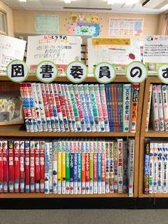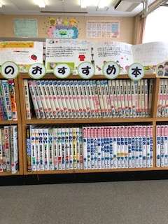 学校図書館には図書委員会のコーナーがあり、おすすめの本を紹介しています。
