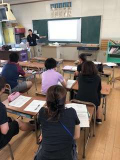 本日、外国語活動の訪問研修を行いました。教員が外国語(英語)の指導法について学びました。