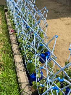 1年生のあさがおも大きく生長してきました。支柱を立てました。