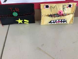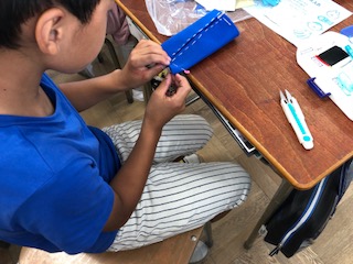 家庭科で針と糸を使って作品を作っています。