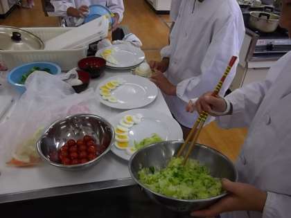 5年2組に続き、5年1組も調理実習をしました。ゆで玉子とサラダをつくりました。