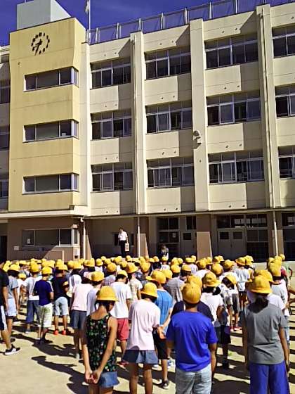 今日の全校朝会では、校長先生から、夏休みの作品について、過去の優秀作品の紹介があり、みなさんもがんばりましょうというお話がありました。