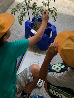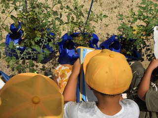 ミニトマトも育ってきました。観察してスケッチをしています。長さもものさしで測っています。