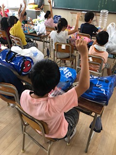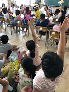着衣水泳の授業では、まず、教室で学習する内容や安全にとって必要なことを学んでからプールに行きます。