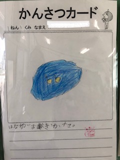 あさがおを観察してかんさつカードにかきました。